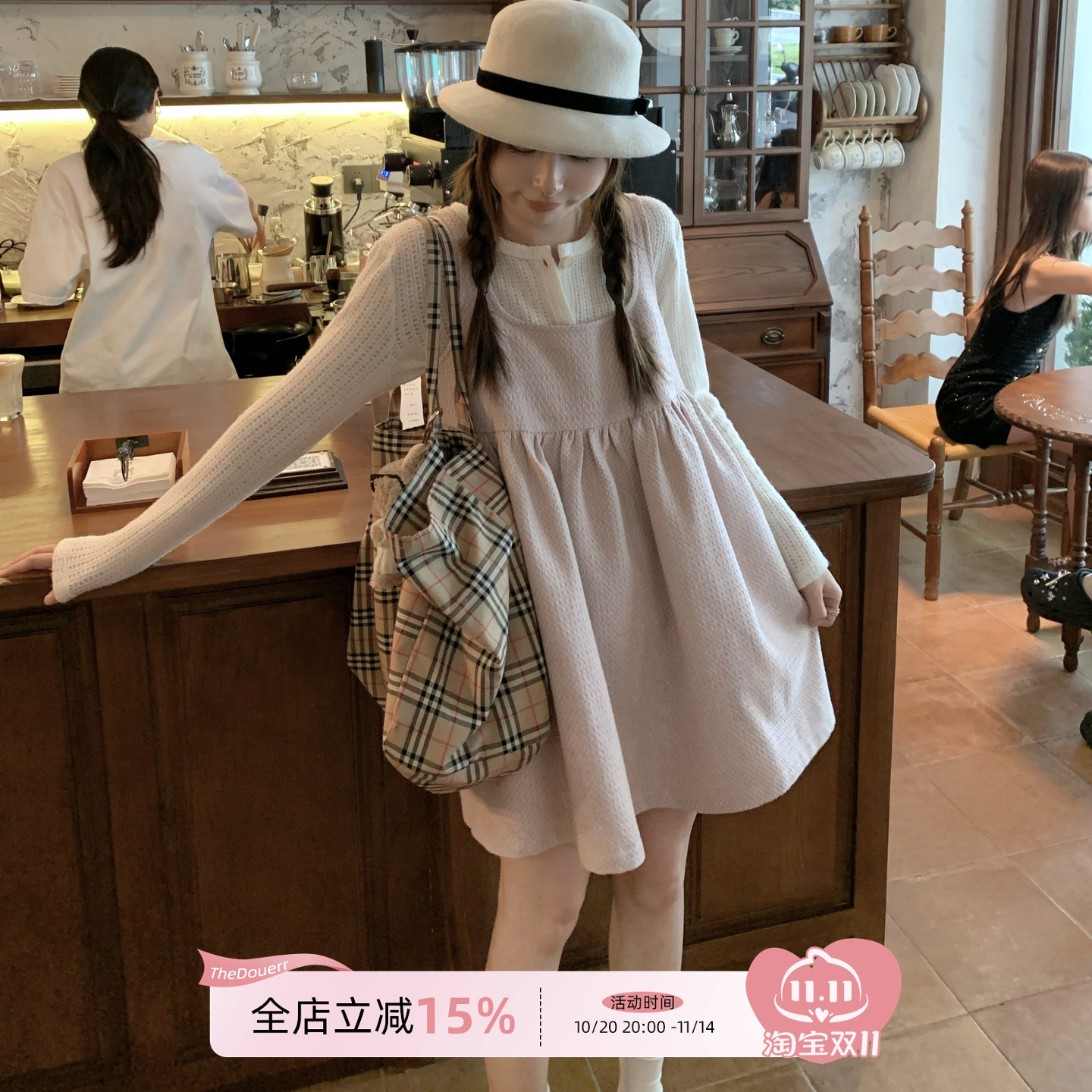 织物猪 油画小狗 复古减龄毛呢背心连衣裙女秋冬叠穿小个子可爱裙
