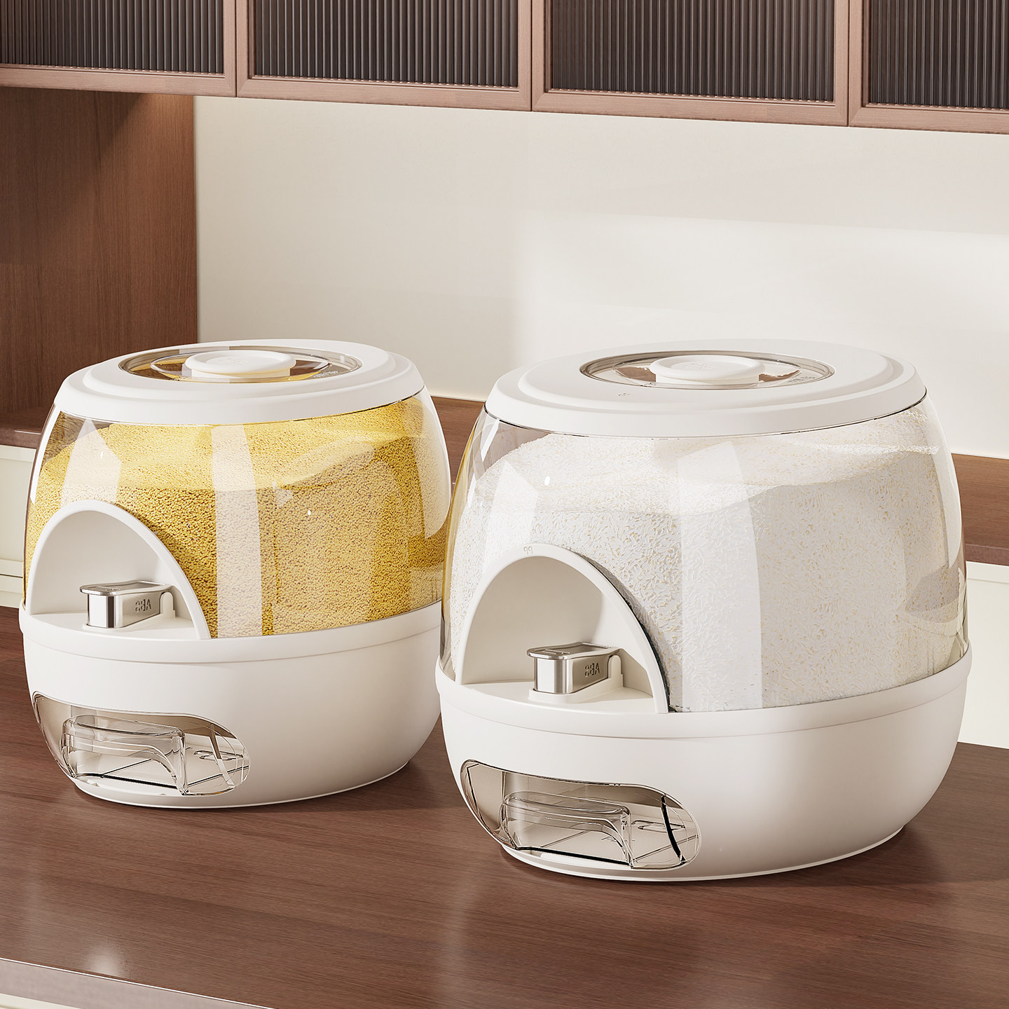 杂粮桶食品级收纳桶按压米箱多功能旋转分格米桶防虫防潮密封米罐