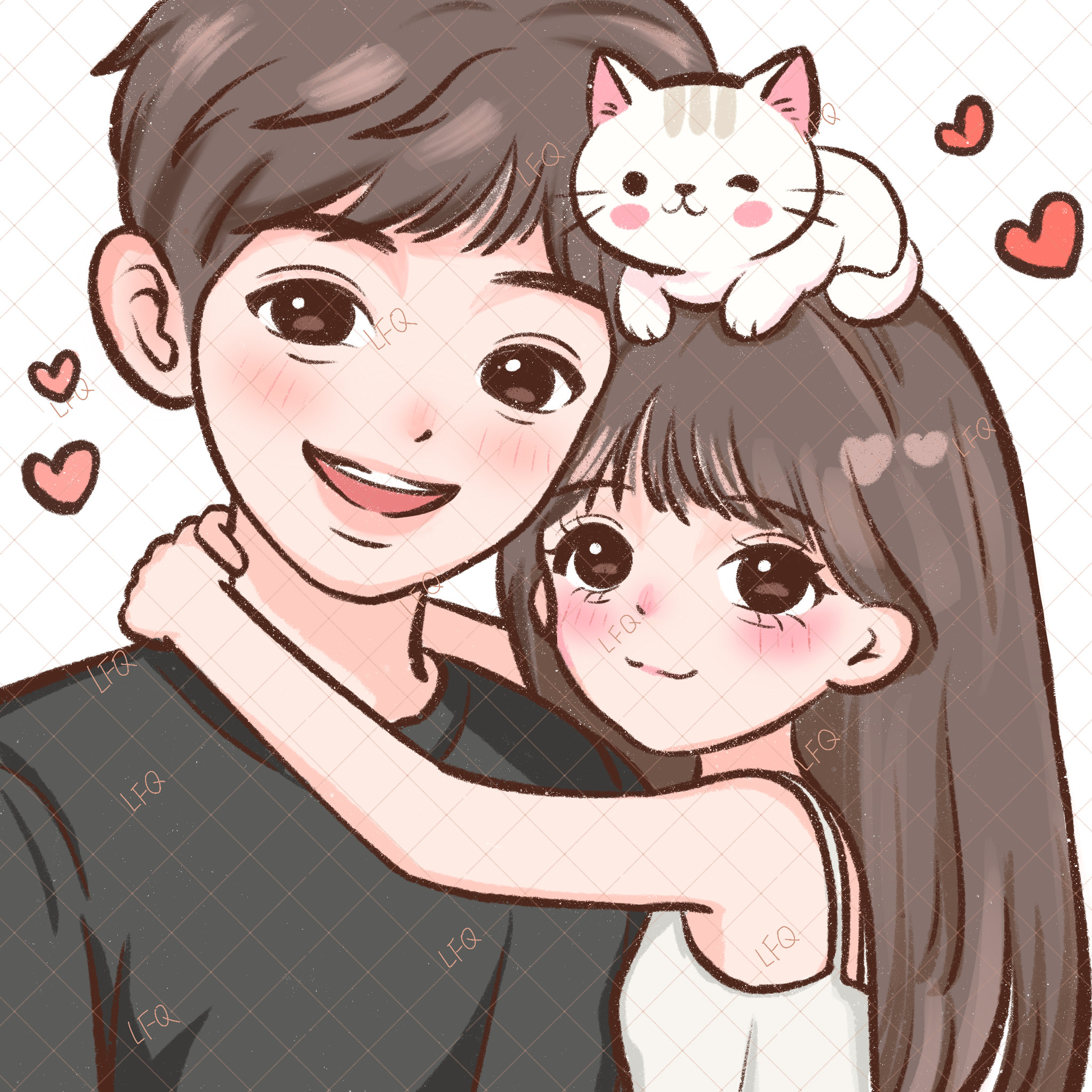 简萌Q版手绘头像设计情侣卡通人物形象logo真人照片漫画定制作