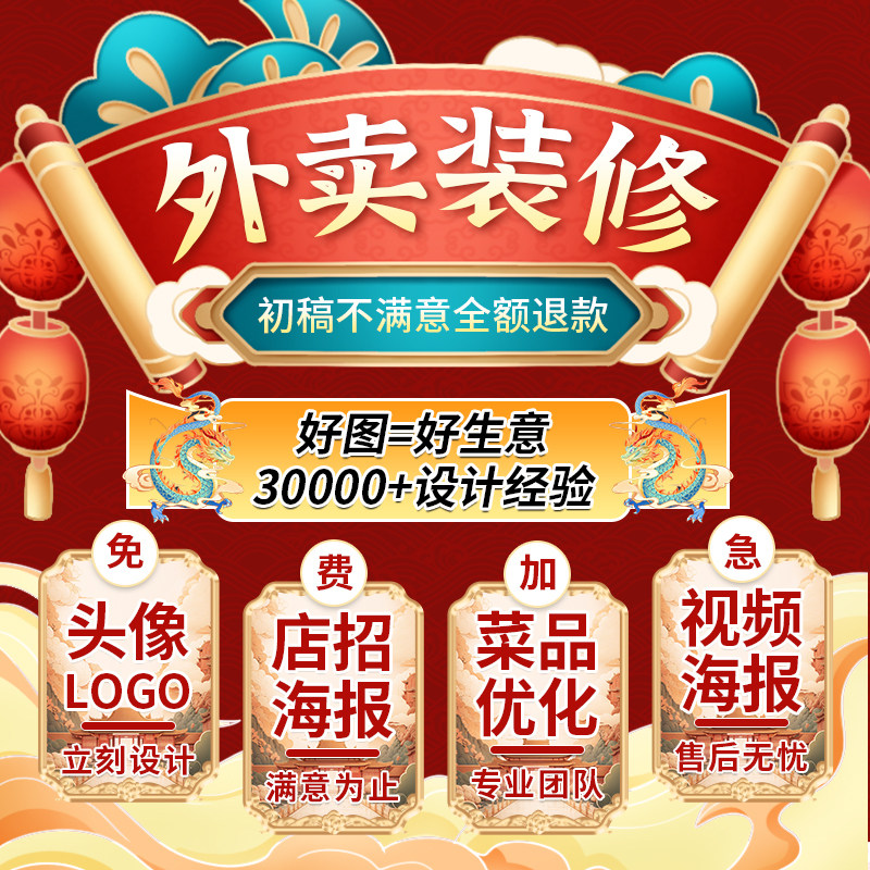外卖店铺装修美团前台搭建餐饮平台菜单上架菜品图片海报头像设计
