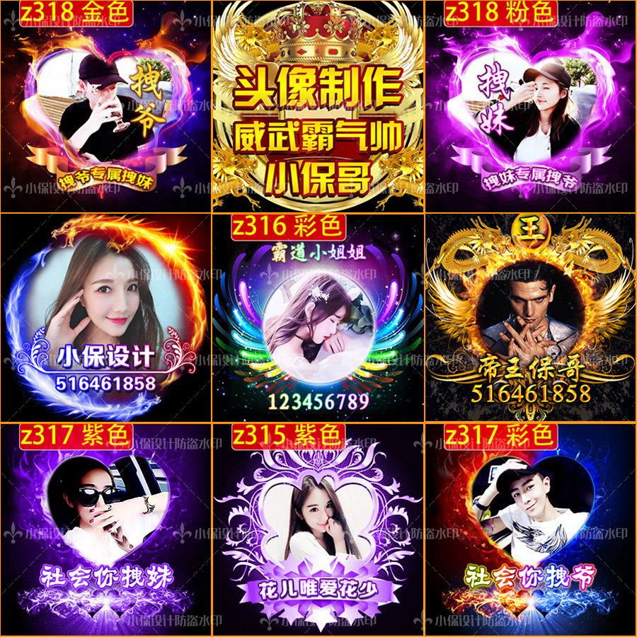 静态公会主播粉丝家族头像设计制作情侣照片头像框PSD源文件素材