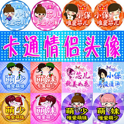 可爱卡通情侣静态头像制作萌版动态加文字头像设计PSD源文件素材