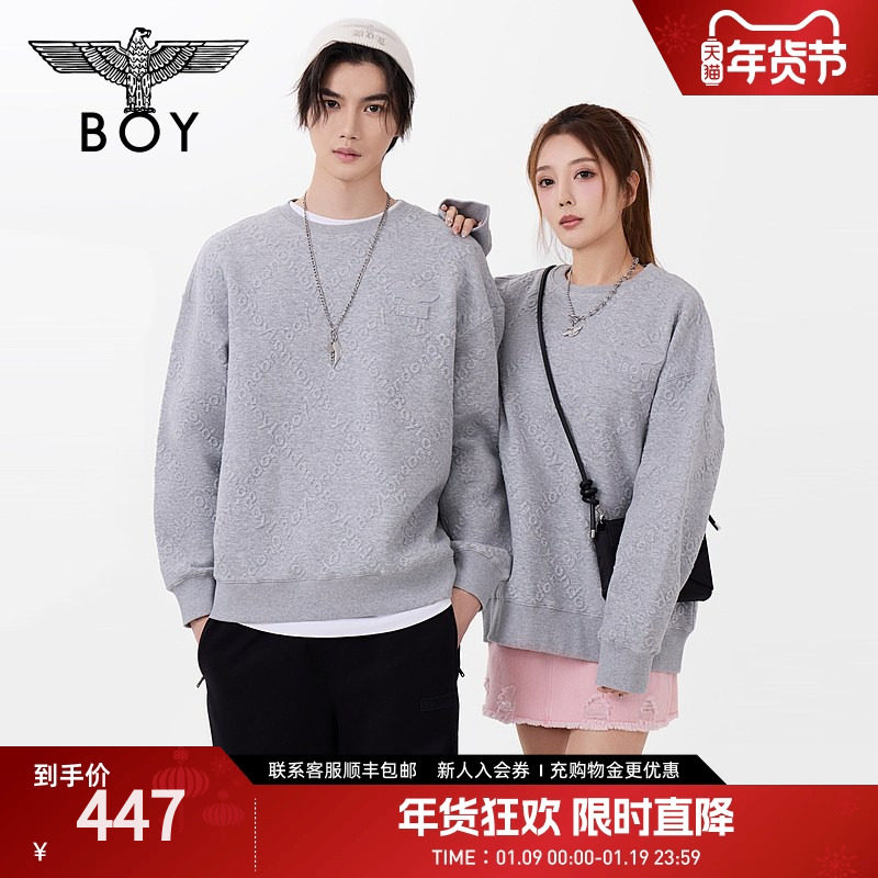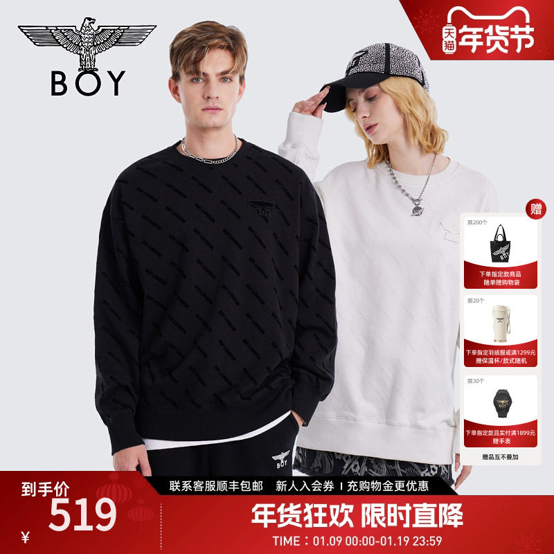 BOYLONDON秋冬潮牌男女同款满印提花日常圆领套头卫衣长袖N03039