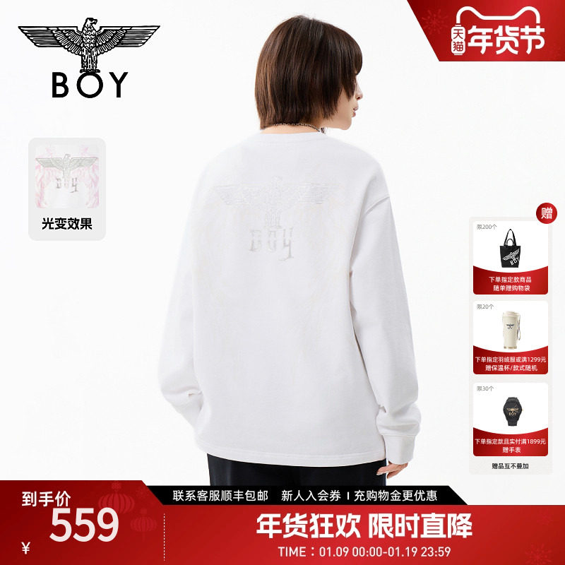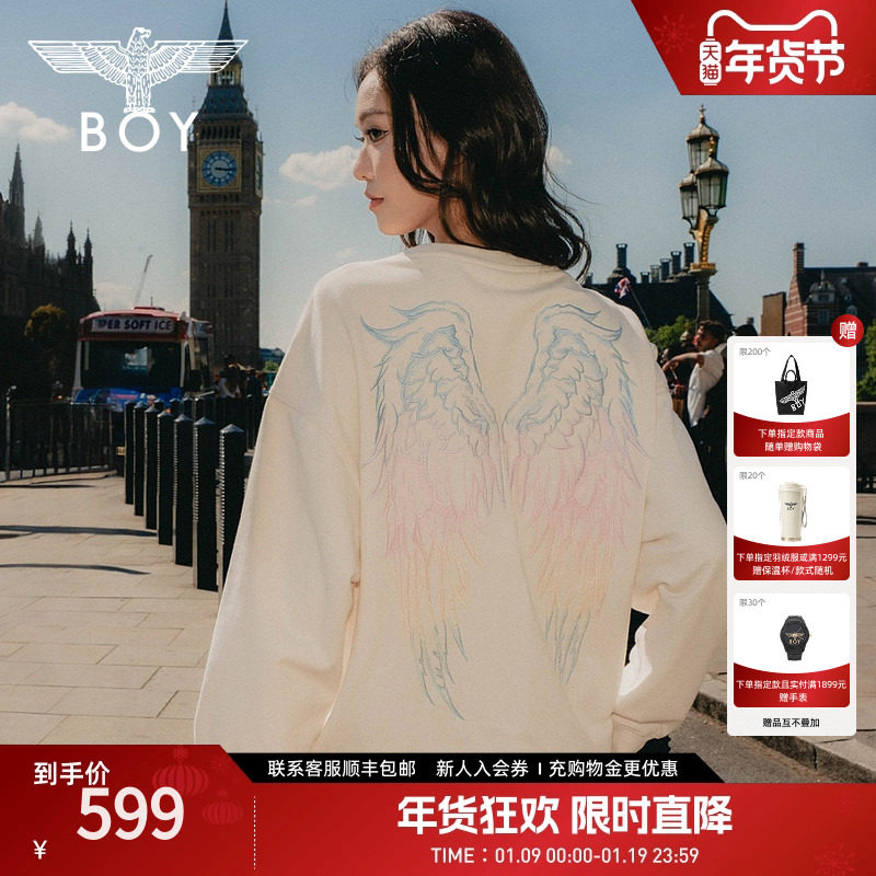 BOYLONDON套头卫衣女宽松慵懒风春季光变翅膀印花圆领上衣N03911