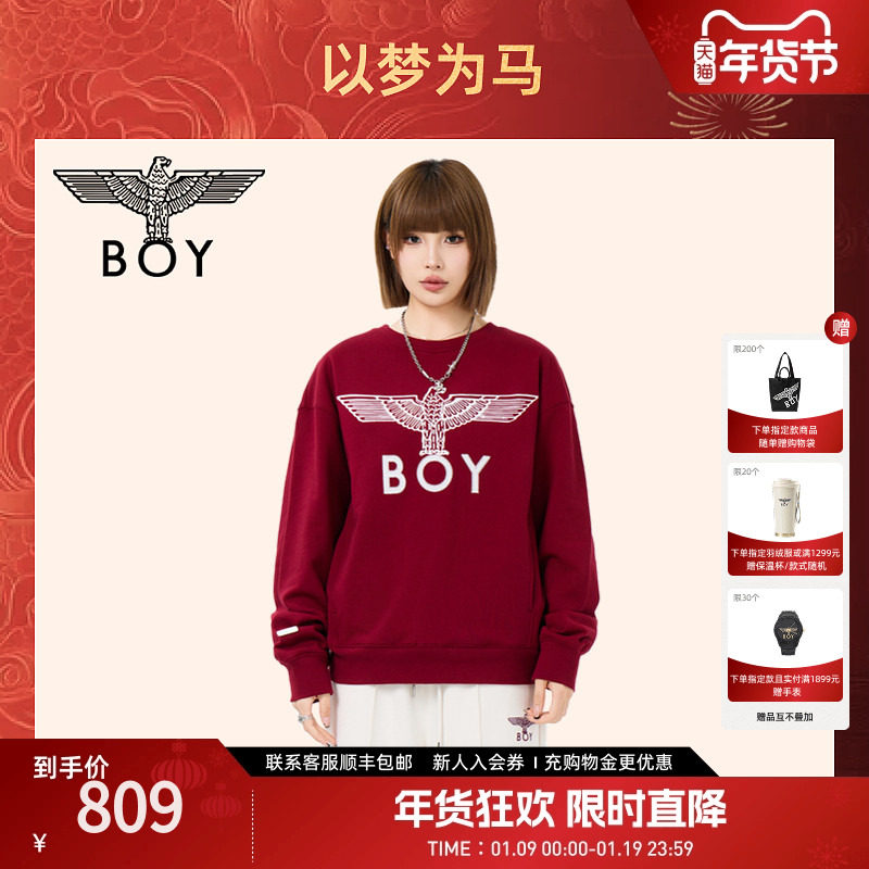 【摩登幻想】BOYLONDON新年红印花圆领情侣春时尚直筒卫衣N03900