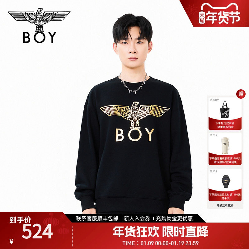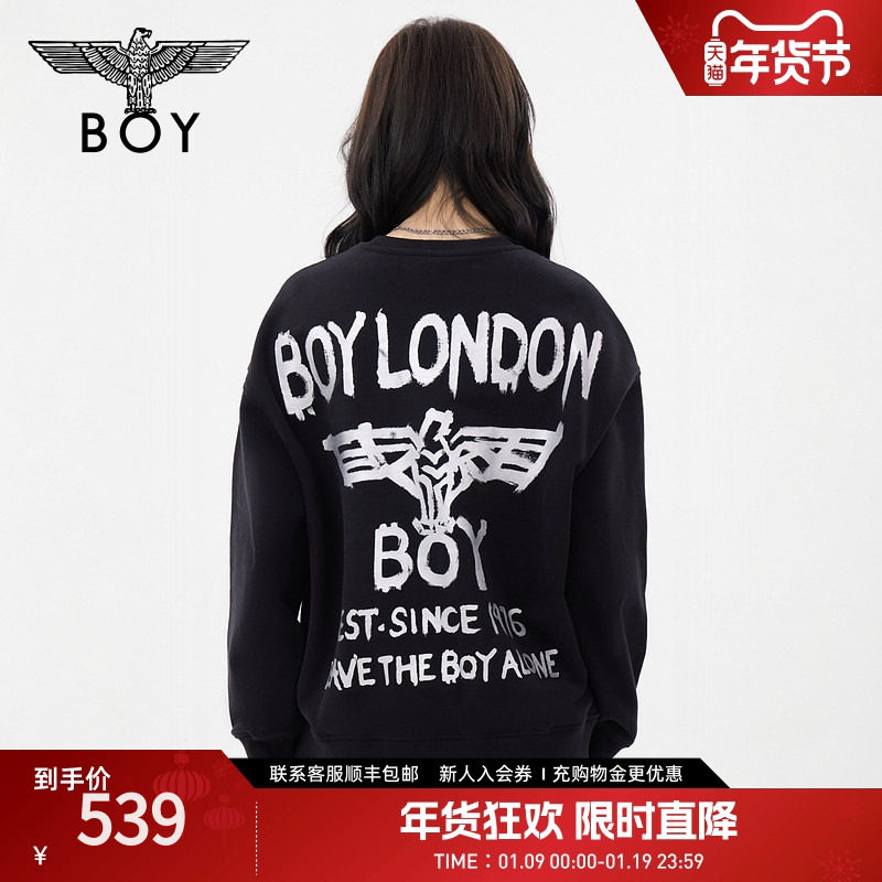 【黑翼金章】BOYLONDON春季男女同款潮牌高街圆领套头卫衣N03904