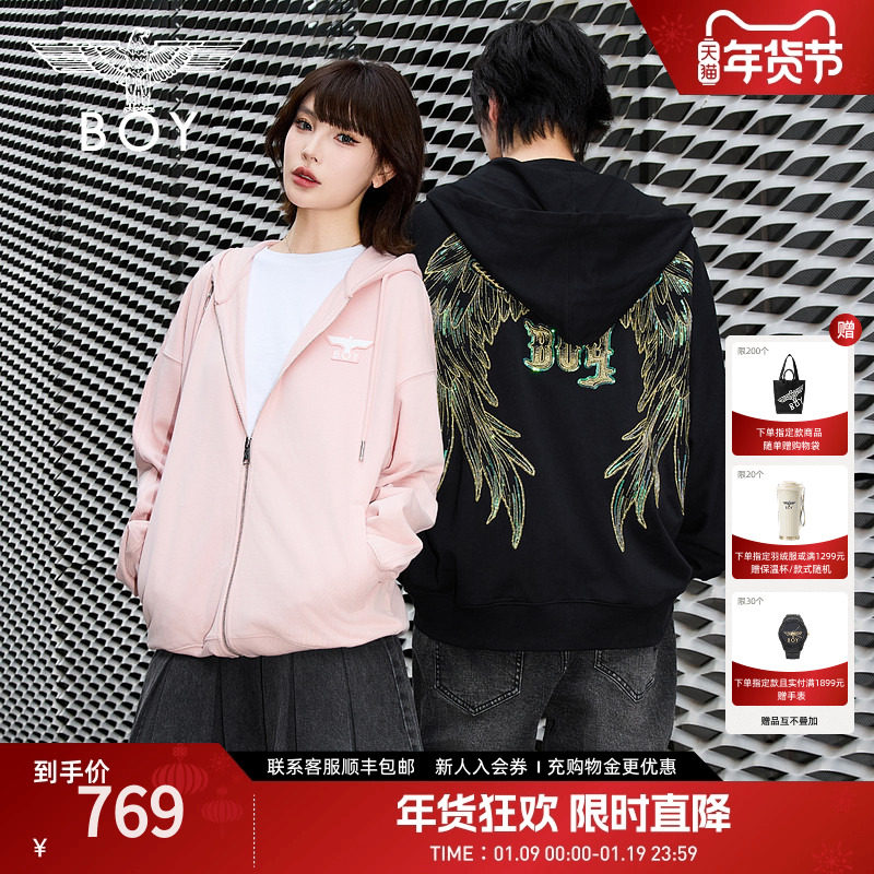 【灿若繁星】BOYLONDON春情侣风外套潮牌刺绣开衫连帽卫衣N06904