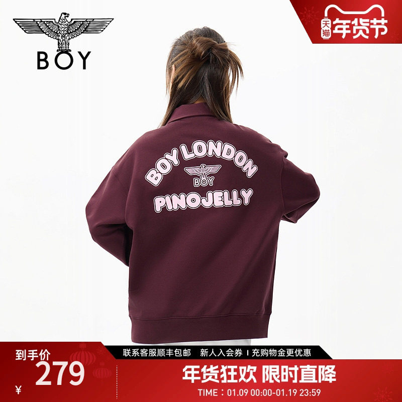 【甜心果冻】BOYLONDON春季潮牌时尚POLO领半拉链男女卫衣N03026