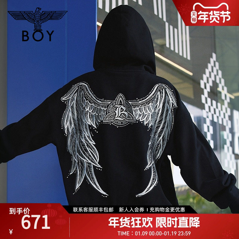 【阳光玫瑰】BOYLONDON春季烫钻宽松连帽长袖卫衣男女款N04017