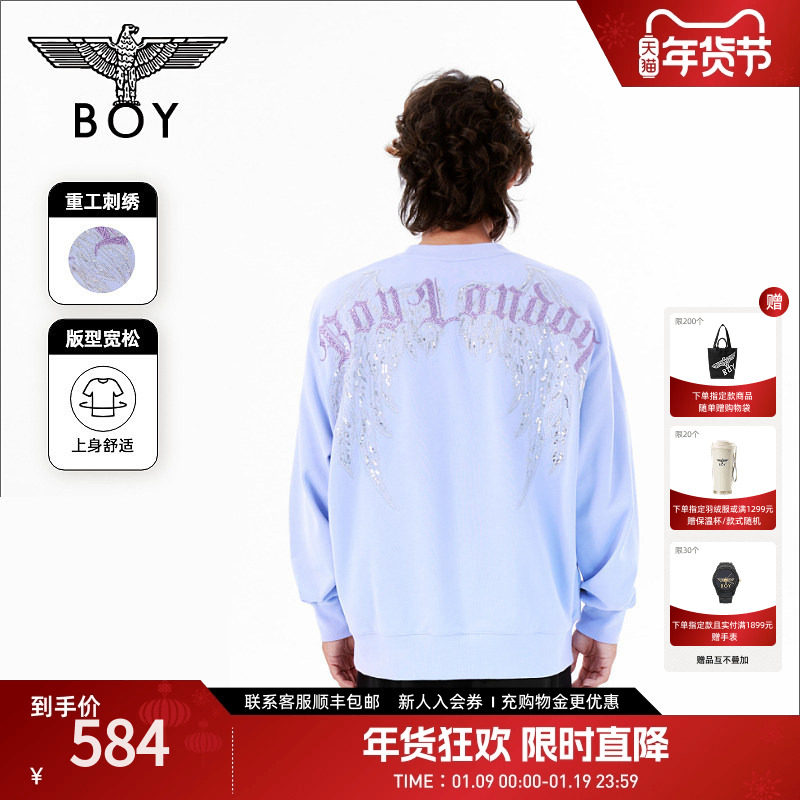 【紫秀灵羽】BOYLONDON春季男女同款潮牌刺绣印花圆领卫衣N03004