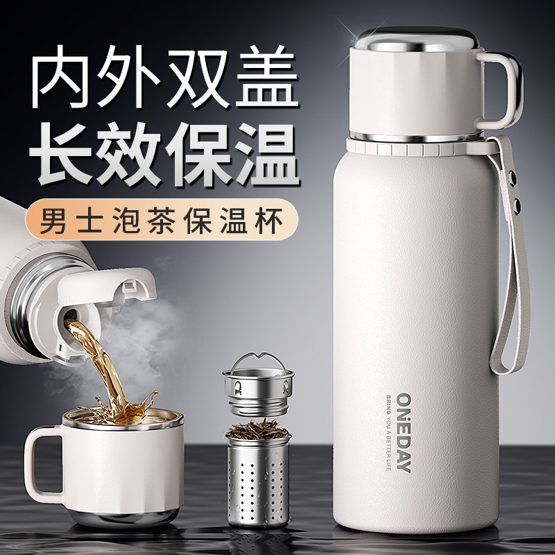 ONEDAY保温杯男士生大容量焖泡茶水分离2024新款高颜值不锈钢壶子