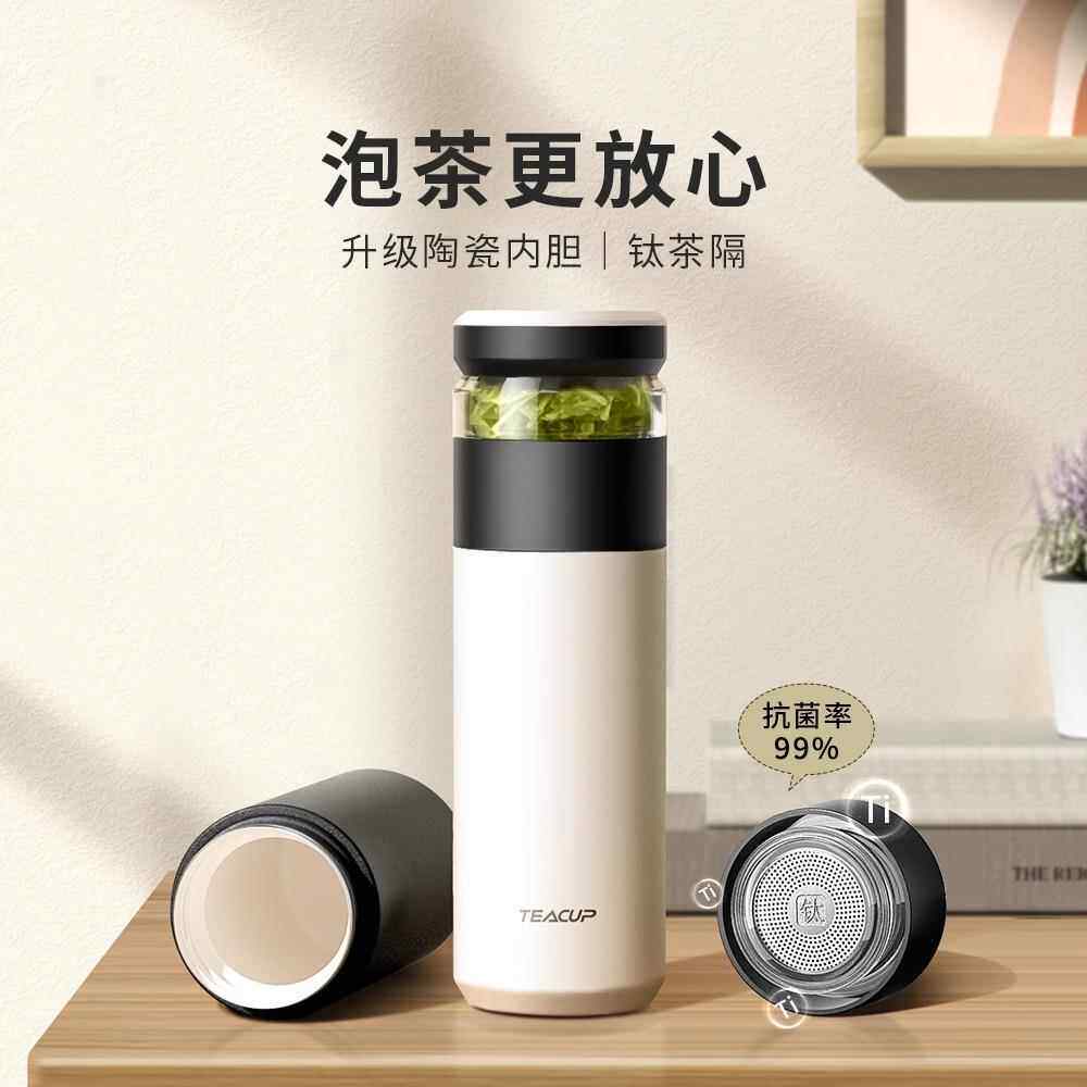 ONEDAY泡茶杯茶水分离保温杯男款士新款陶瓷内胆钛爸爸专用水杯子