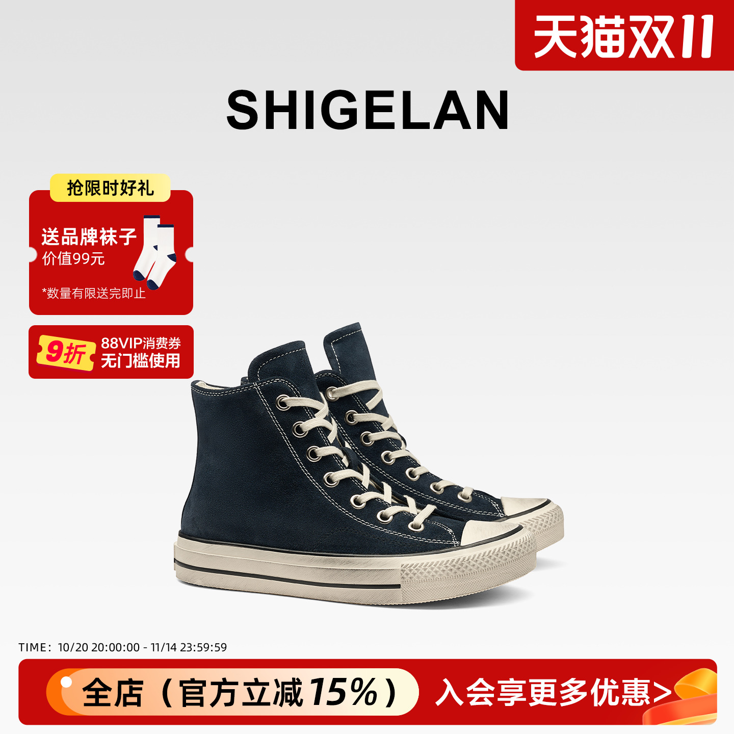 诗歌兰2025新款做旧高帮牛皮帆布鞋女鞋休闲鞋高帮鞋厚底增高板鞋