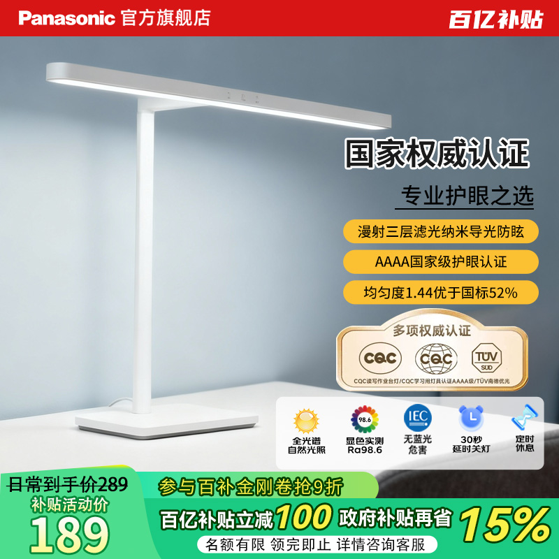 松下T10台灯学习专用护眼工作阅读儿童大学生书桌全光防近视横头