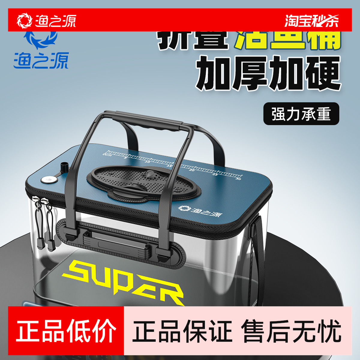 渔之源透明活鱼桶折叠多功能鱼护桶热压成型钓鱼桶透明鱼箱装鱼桶