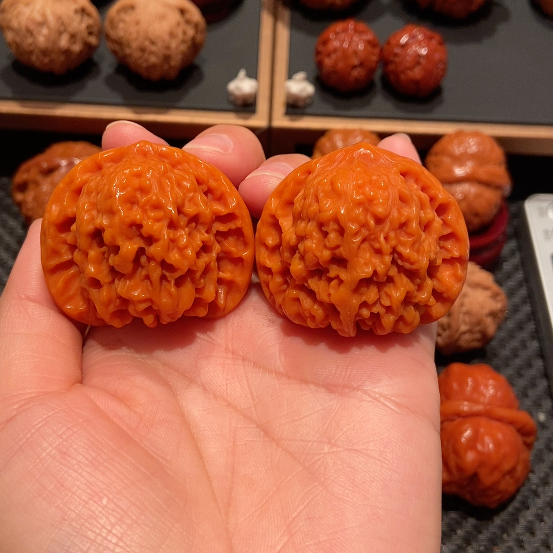 精品红皮老树老核文玩满天星核桃手把件密纹细选把玩狮子头麻核桃