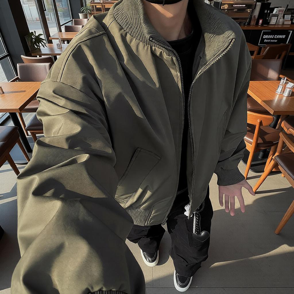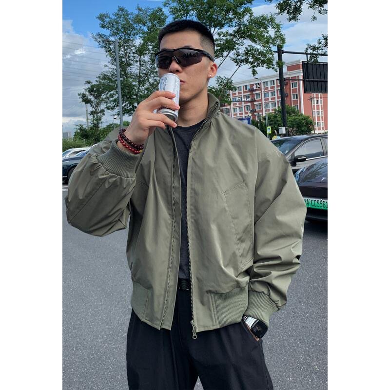军绿色美式短款廓形工装外套男款秋季飞行夹克cleanfit立领棒球服