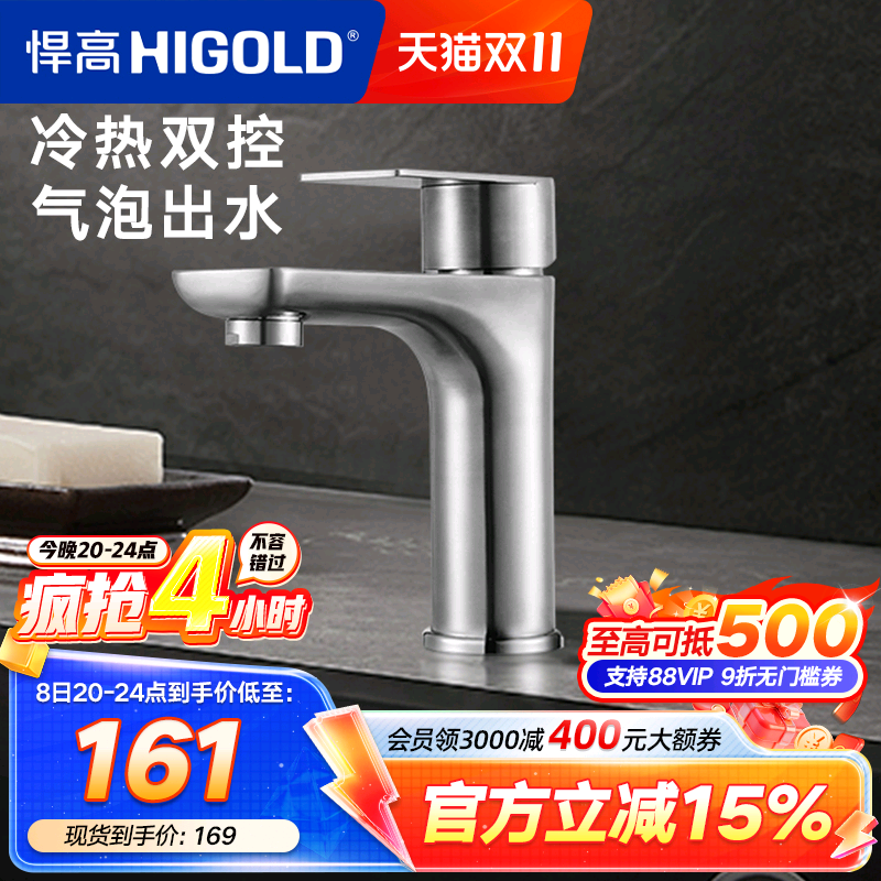 HIGOLD/悍高洗手间卫浴面盆冷热龙头304不锈钢卫浴龙头