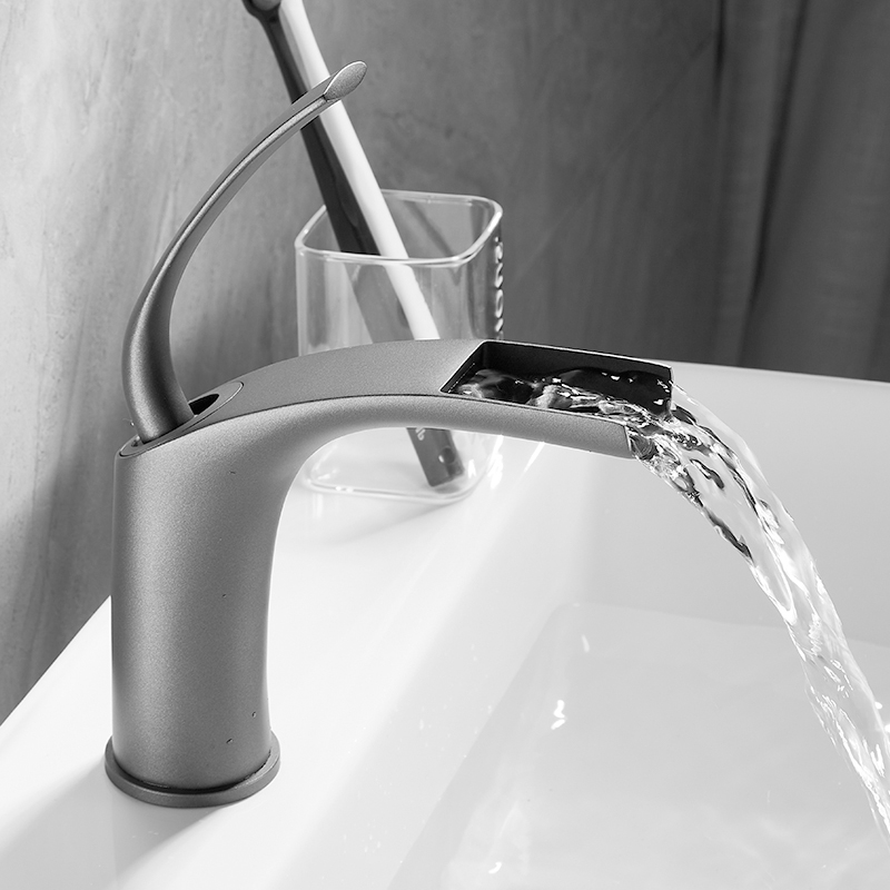 枪灰瀑布水龙头全铜冷热面盆龙头浴室柜卫生间洗脸盆家用卫浴龙头