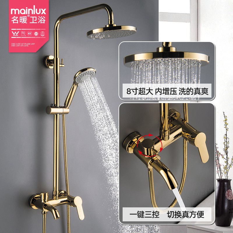全铜淋浴水龙头冷热混水阀浴室三联混合阀浴缸热水器简易花洒套装