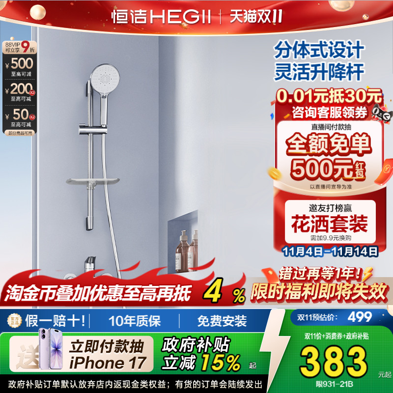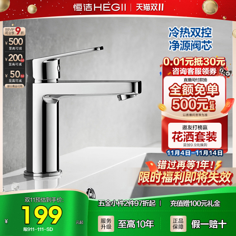 恒洁水龙头铜合金家用浴室卫浴抽拉冷热面盆龙头洗发卫生间洗手盆