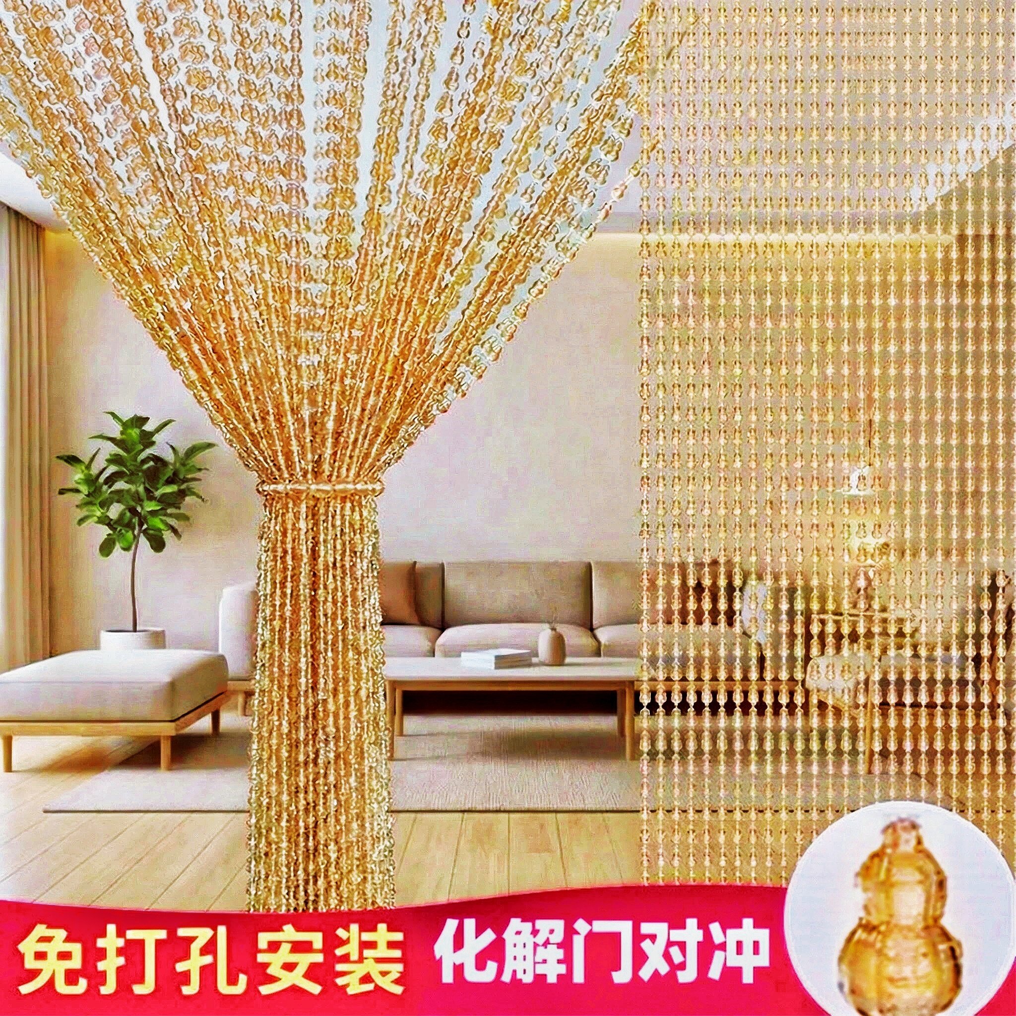 葫芦门帘隔断帘玄关化解门对卫生间风水帘挂帘免打孔水晶珠帘新款