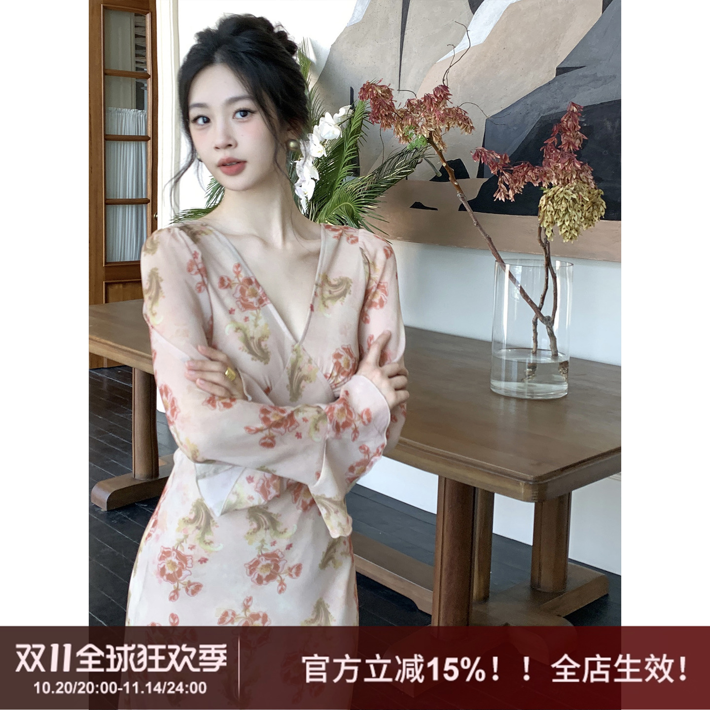 - 文艺复古连衣裙春