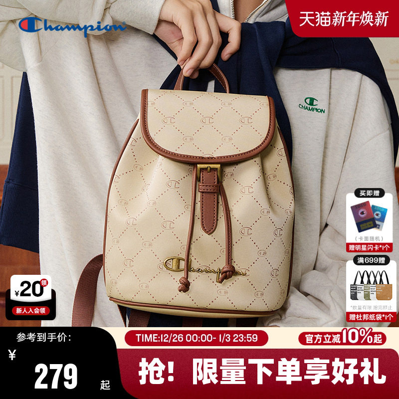 Champion冠军双肩包女2025秋冬新款潮牌老钱风满印老花背包复古