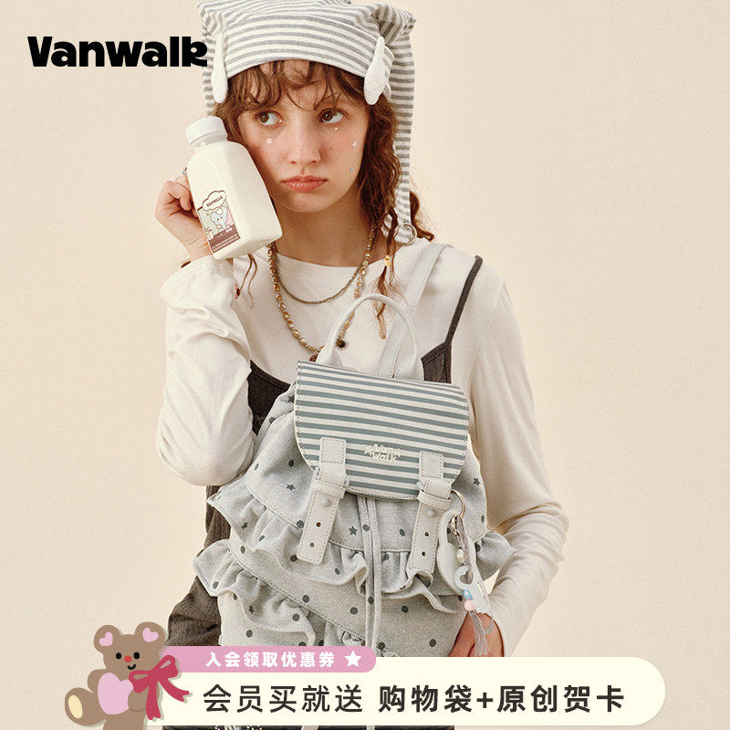 VANWALK松果部落 秋冬新款小众芭蕾风裙边双肩包女出游通勤小背包