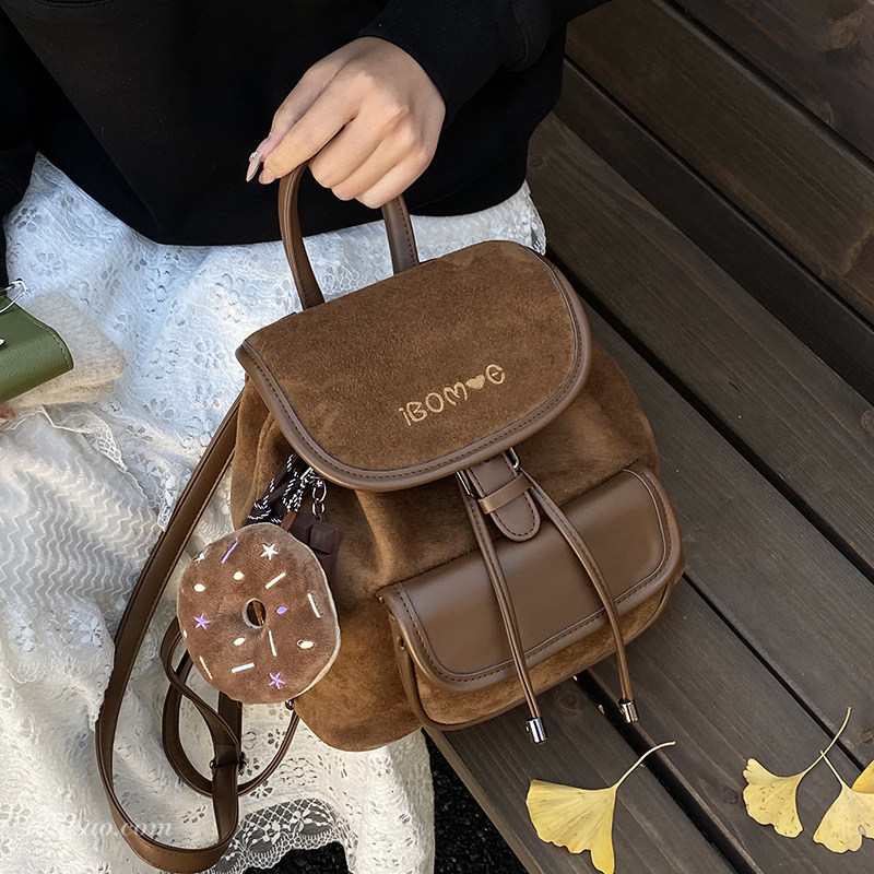 秋冬季复古麂皮绒女双肩包2025新款大容量通勤后背包学生上课书包