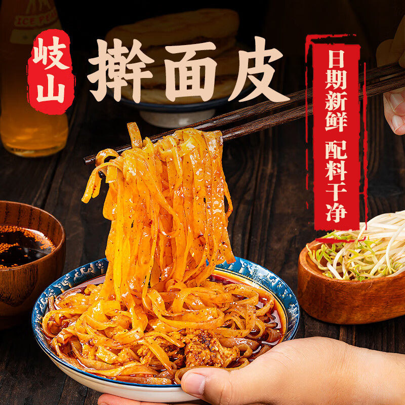 宝鸡擀面皮秦岐轩岐山特产即食早餐小吃零食方便面皮陕西凉皮速食