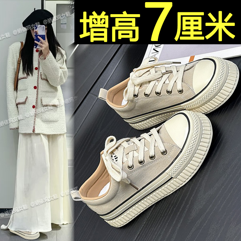 复古百搭低帮板鞋女2025新款秋季轻便休闲运动鞋内增高厚底帆布鞋