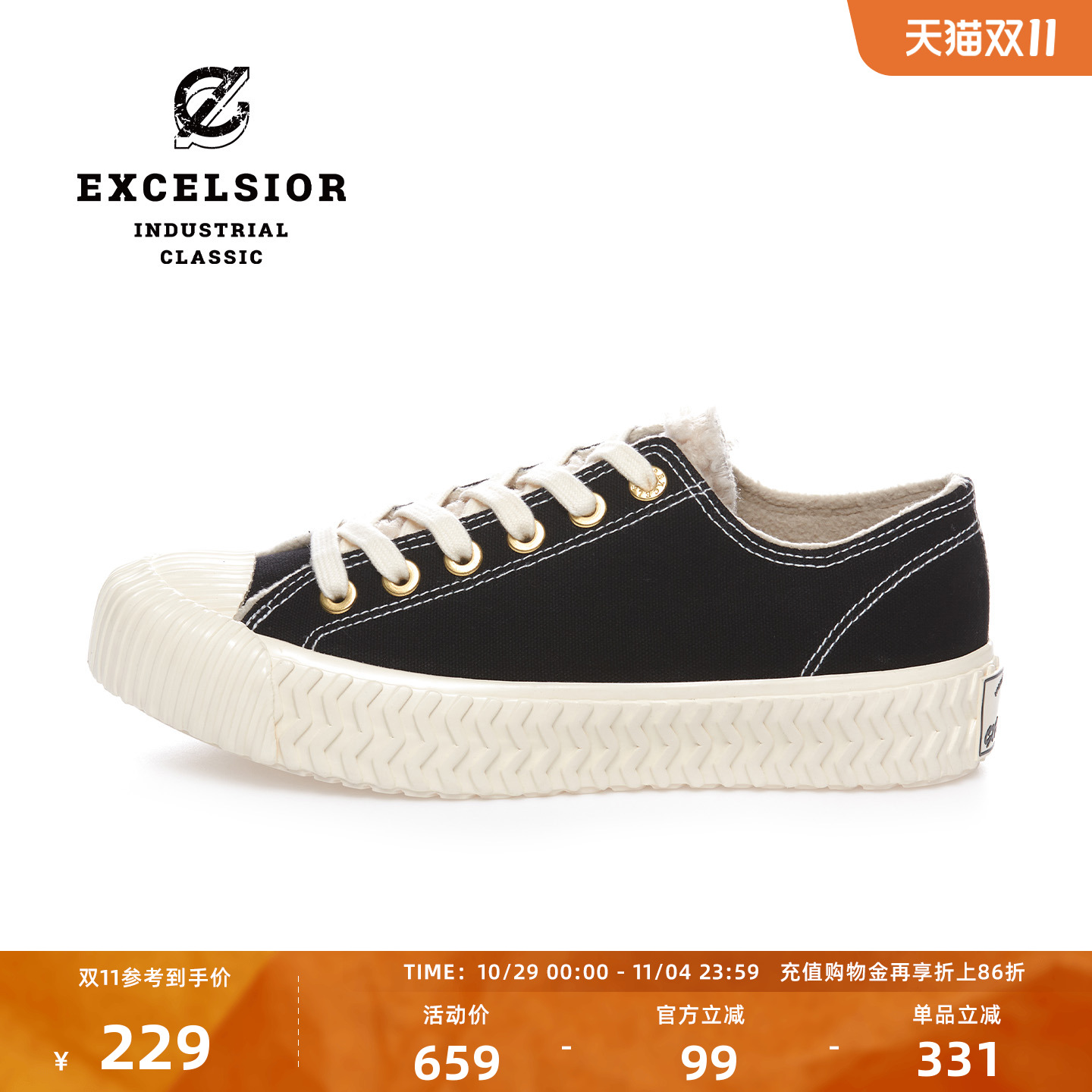 excelsior饼干鞋 秋冬女鞋加棉板鞋百搭休闲鞋低帮厚底帆布鞋男