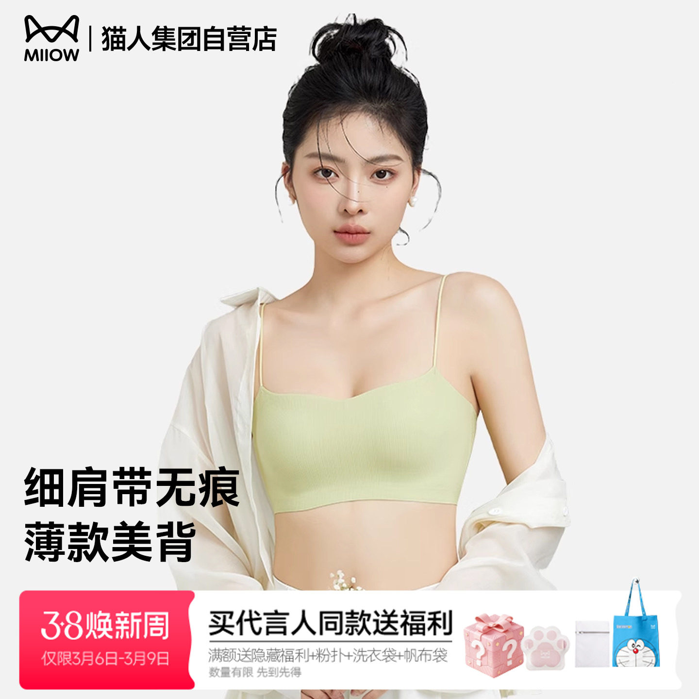 猫人细肩带内衣夏季薄款美背一字无痕抹胸吊带背心一体式聚拢文胸