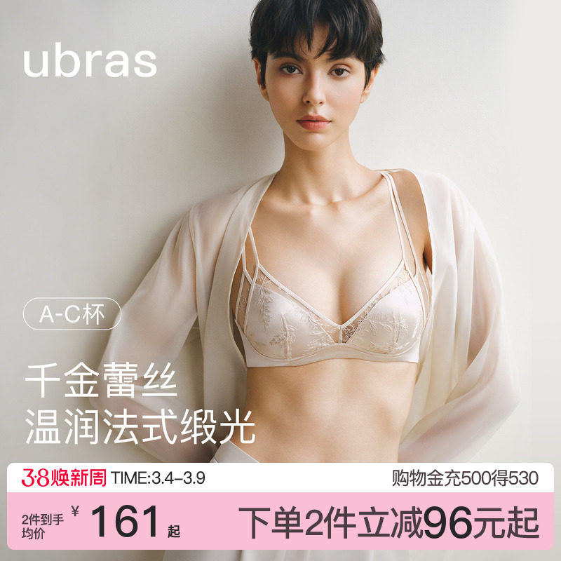 ubras千金蕾丝双肩带内衣新款法式缎面性感纯欲轻薄无钢圈文胸罩