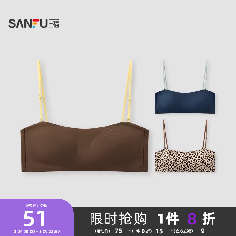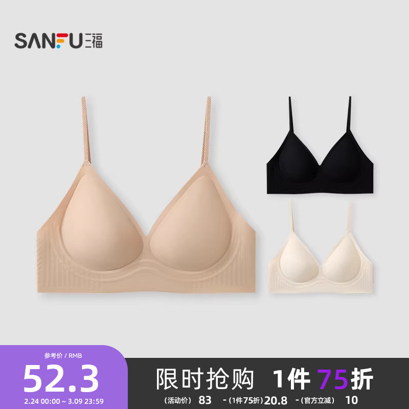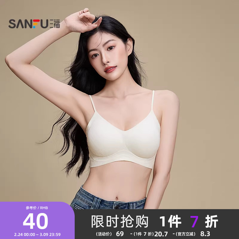 【外穿细肩带】三福粉底液内衣中薄无钢圈聚拢凉感抗菌隐形文胸女
