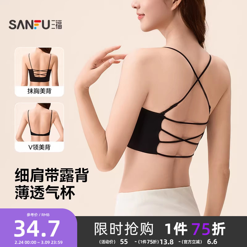 三福美背内衣2026春夏新薄款粉底液无痕聚拢外露细肩带文胸一体式