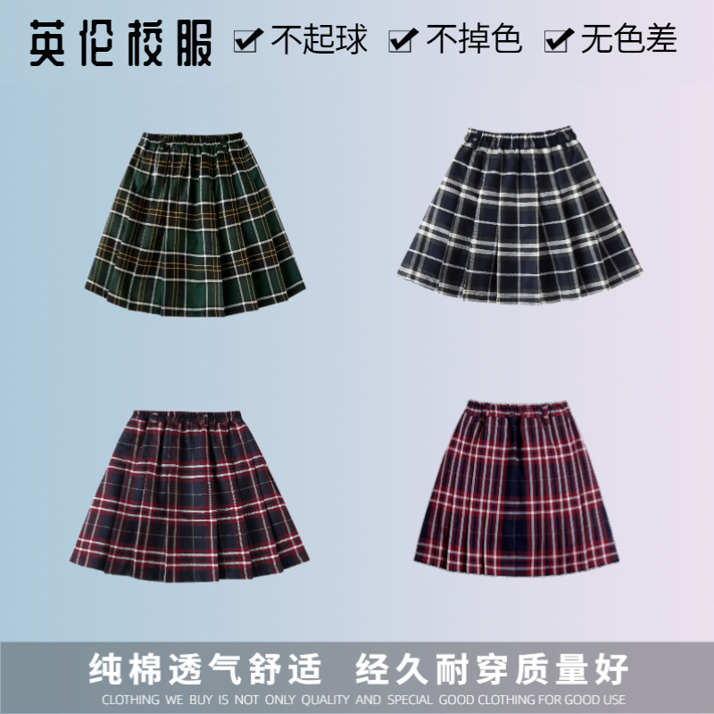 儿童学院女童半身裙 英伦校服百褶裙 淑女红色格子校服短裙半身裙