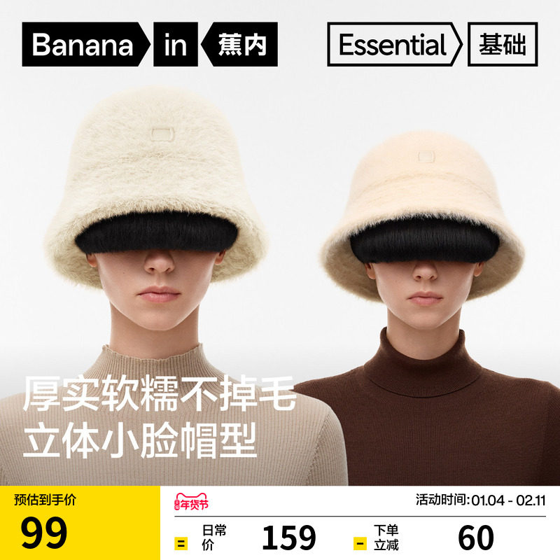 蕉内502GO女士仿兔绒帽防风保暖毛绒可爱渔夫帽冬新款盆帽帽子
