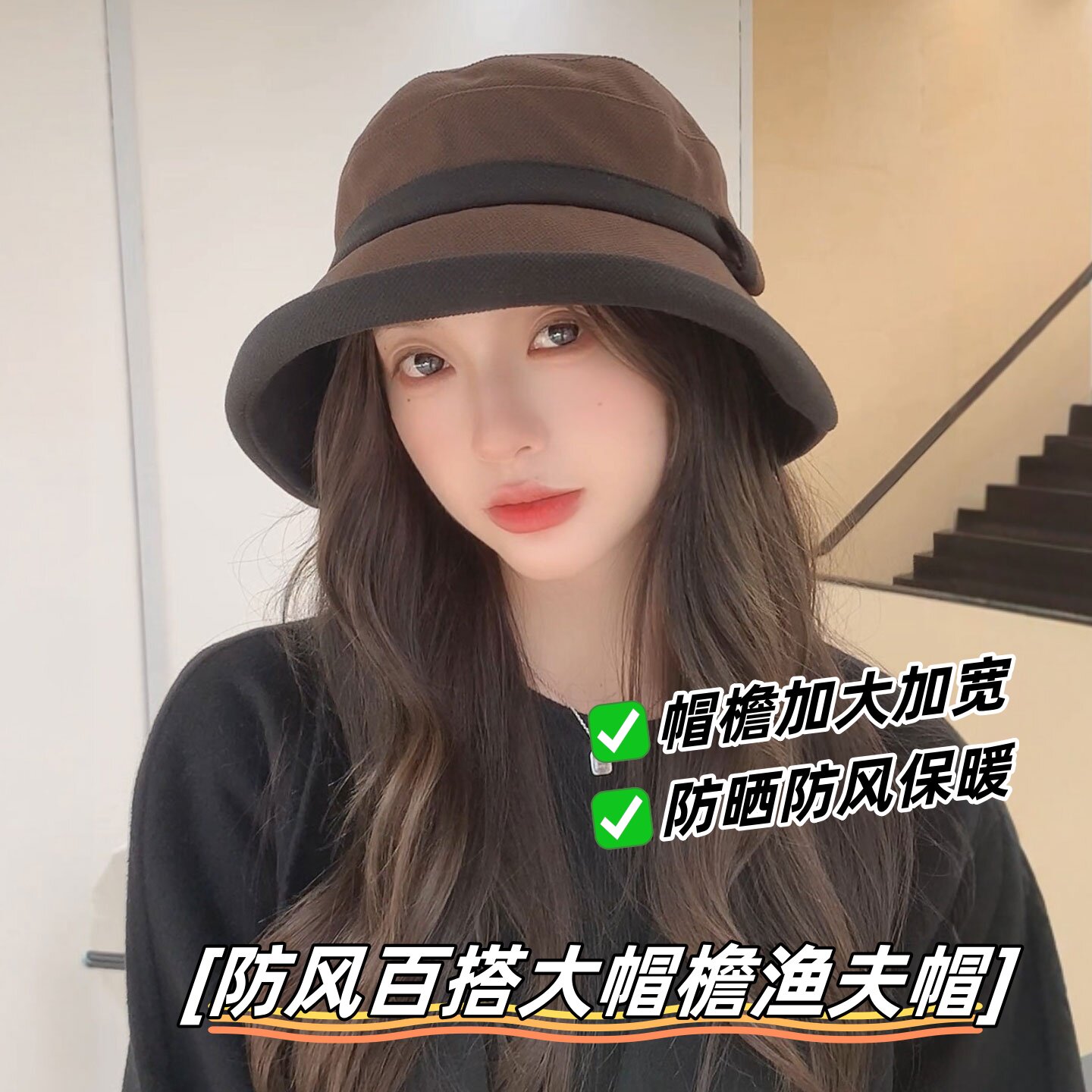 高级感台灯帽女生气质素雅纯色盆帽冬季保暖素颜遮脸水桶帽渔夫帽