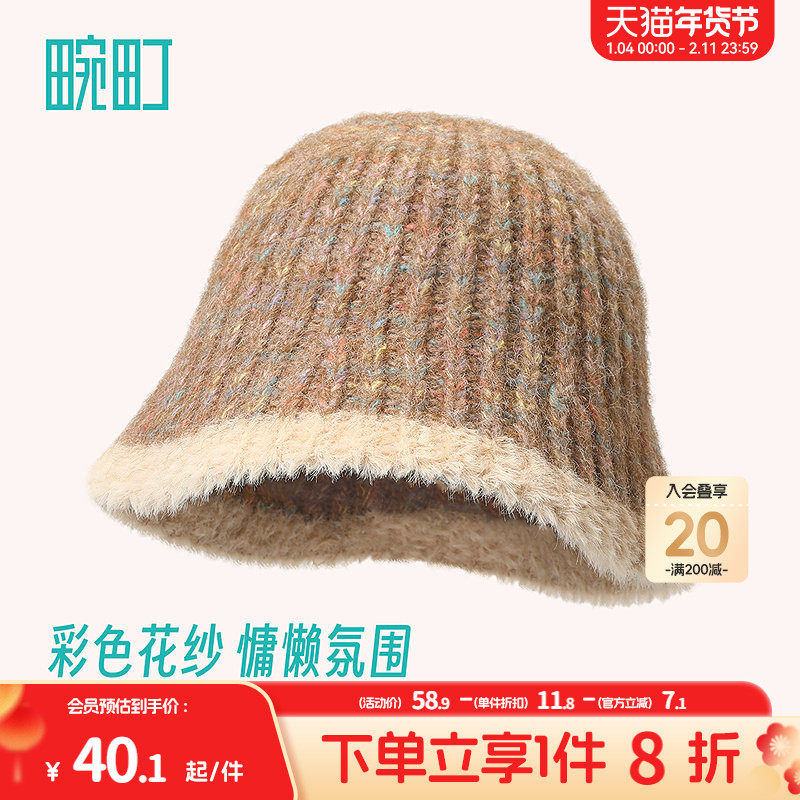 畹町针织帽女秋冬季保暖毛线帽子显脸小盆帽复古慵懒风纱线水桶帽