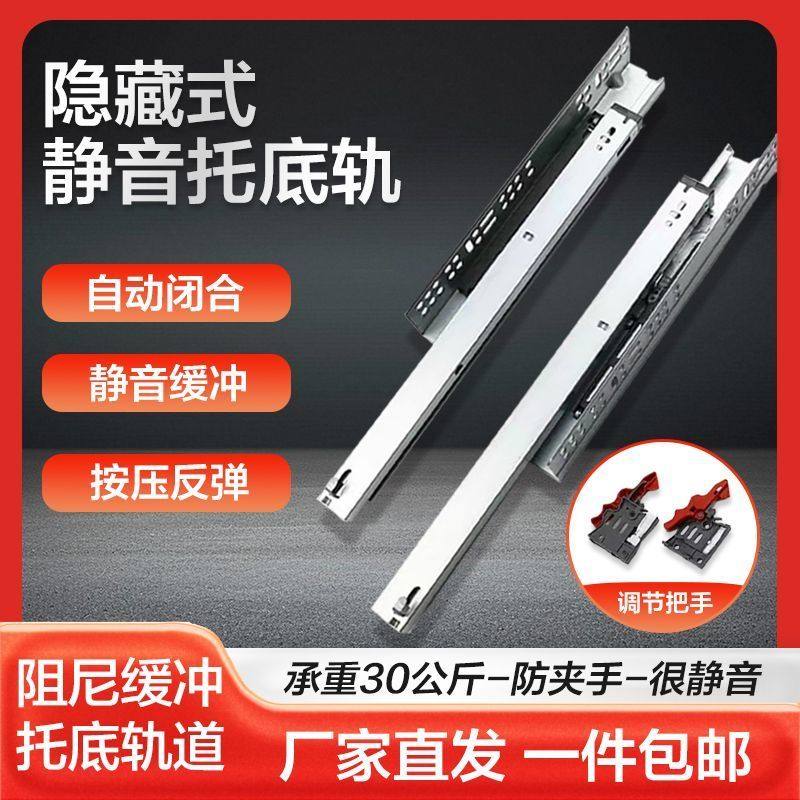 隐藏抽屉轨道三节轨阻尼缓冲静音导轨五金配件暗装托底滑轨隐藏轨