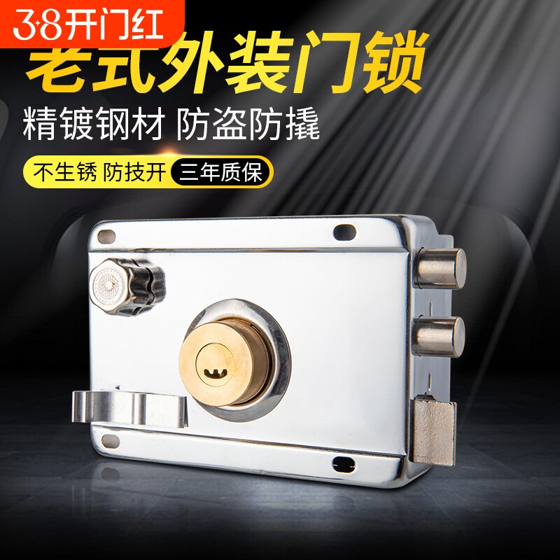 老式外装门锁锁具防盗门锁铁门锁房门锁室内大门锁不锈钢木门锁芯