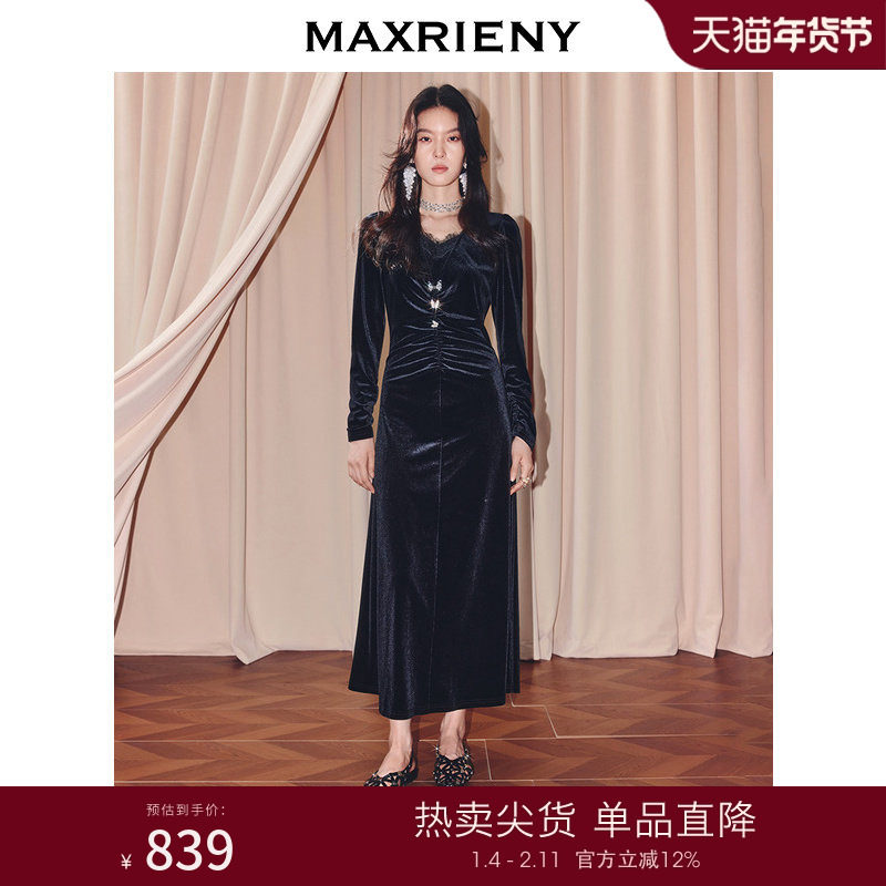 MAXRIENY法式复古v领丝绒连衣裙25秋款x型收腰端庄长裙宴会礼服裙