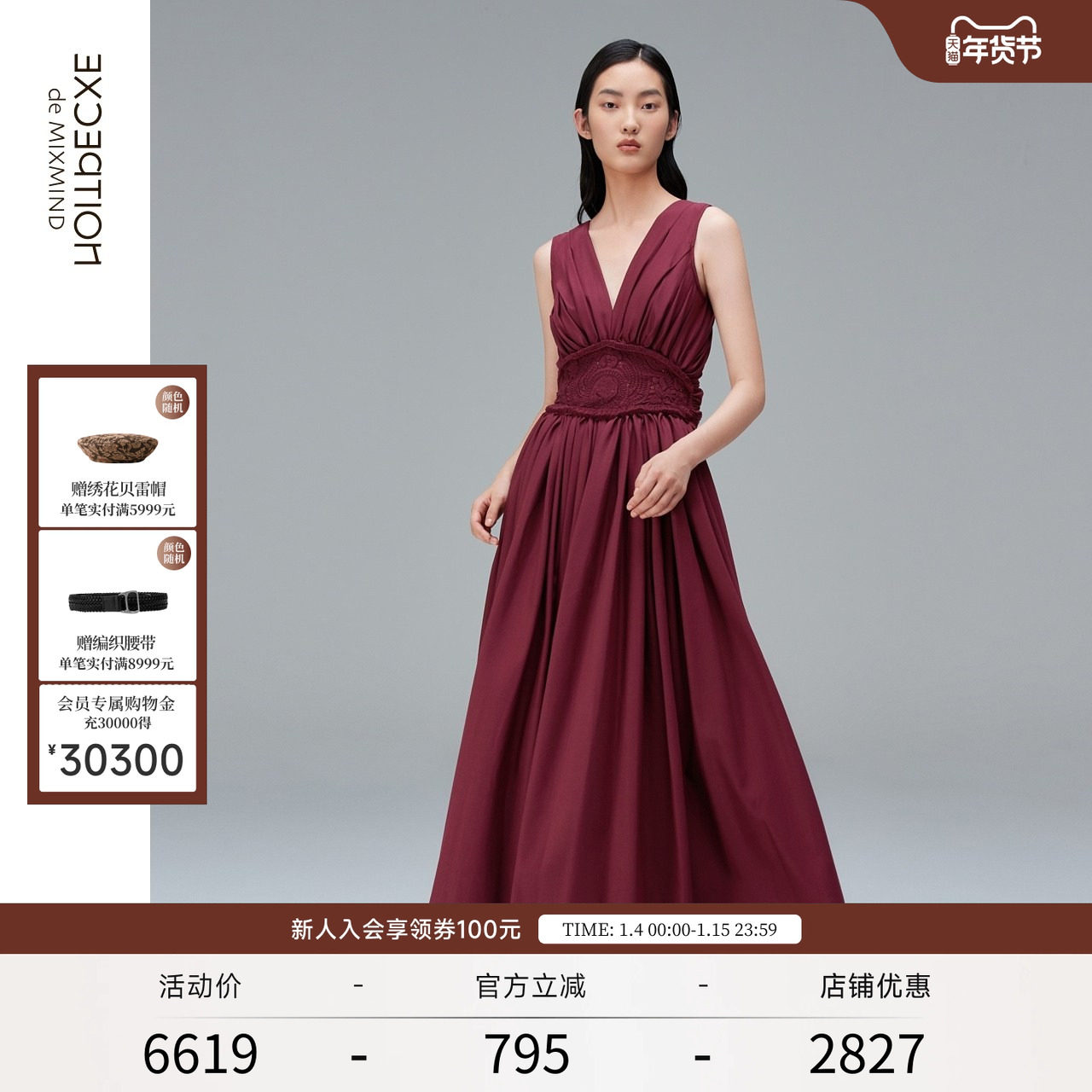 【商场同款】MAXRIENY浪漫度假风连衣裙25秋款荷叶边v领收腰长裙