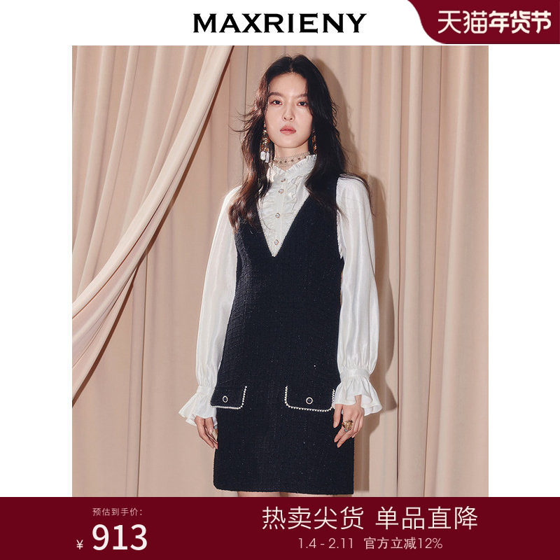 MAXRIENY撞色边深v领粗花呢法式小香风背心连衣裙25秋款打底裙子