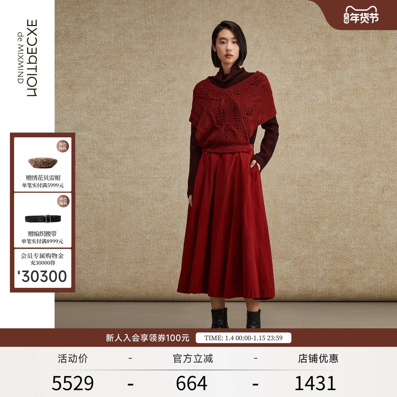 EXCEPTION例外女装春秋款连衣裙离絮羊毛V领宽松A字裙子中长裙女
