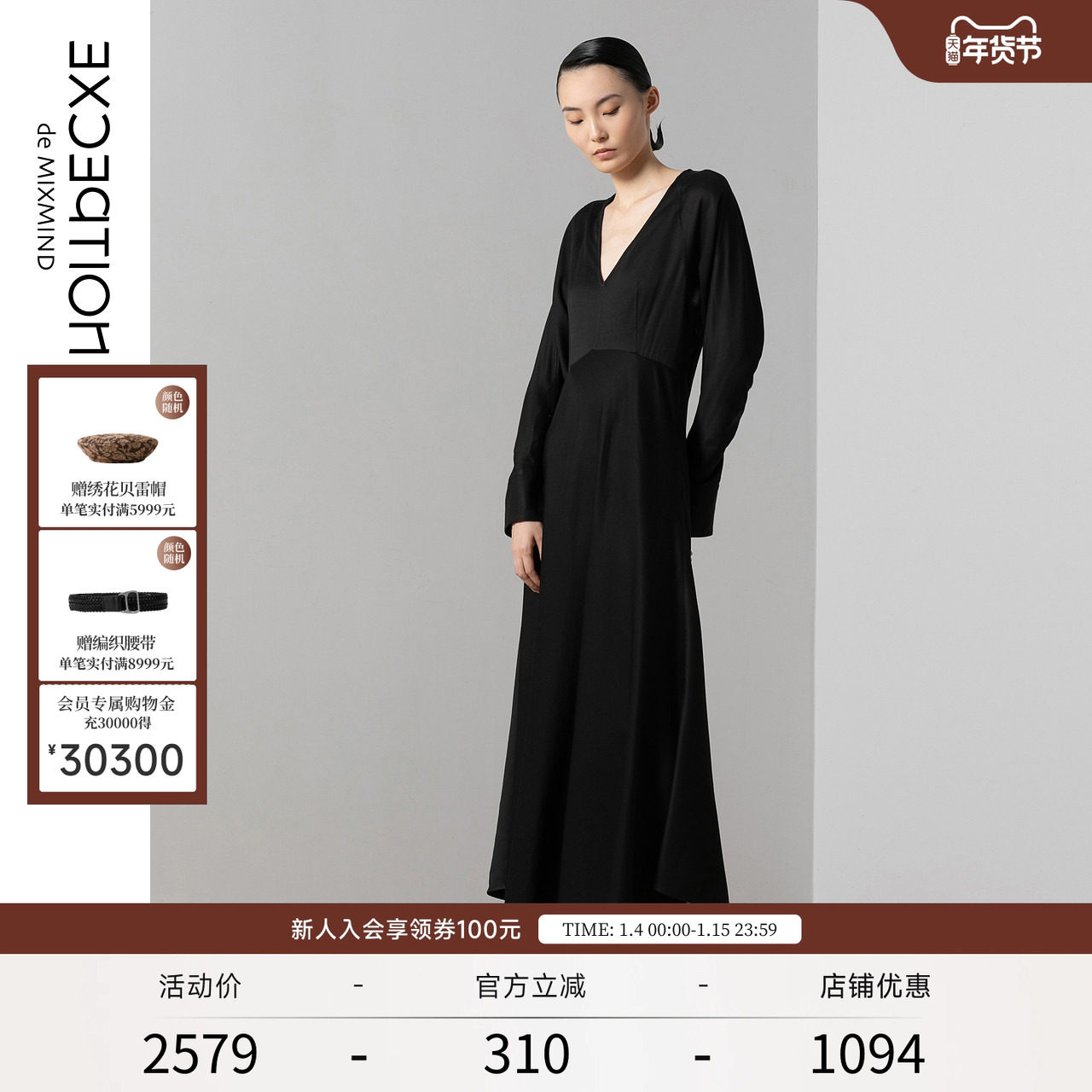 【商场同款】MAXRIENY法式复古v领连衣裙25秋款X型收腰长袖长裙