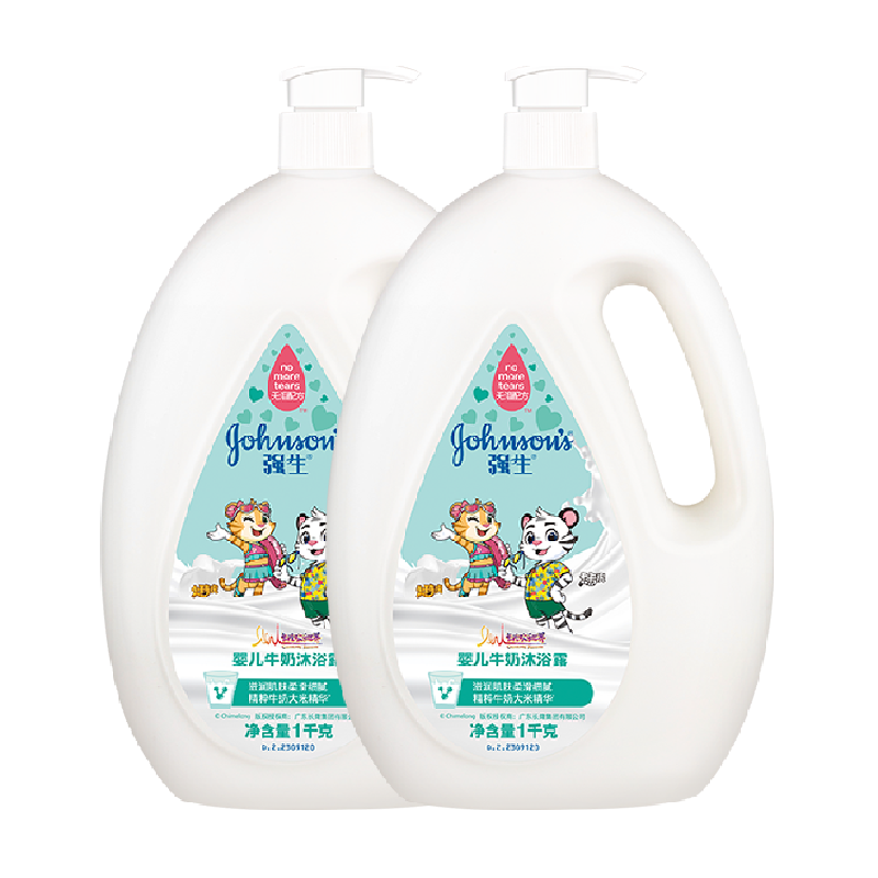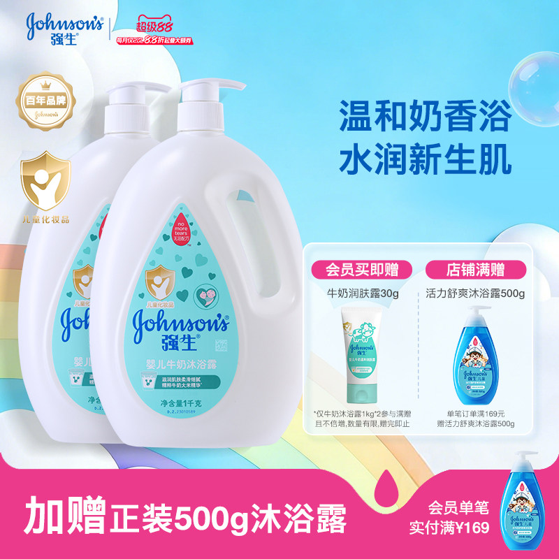 强生婴儿牛奶沐浴露宝宝婴幼儿童男女温和滋养保湿沐浴乳1kg×2瓶