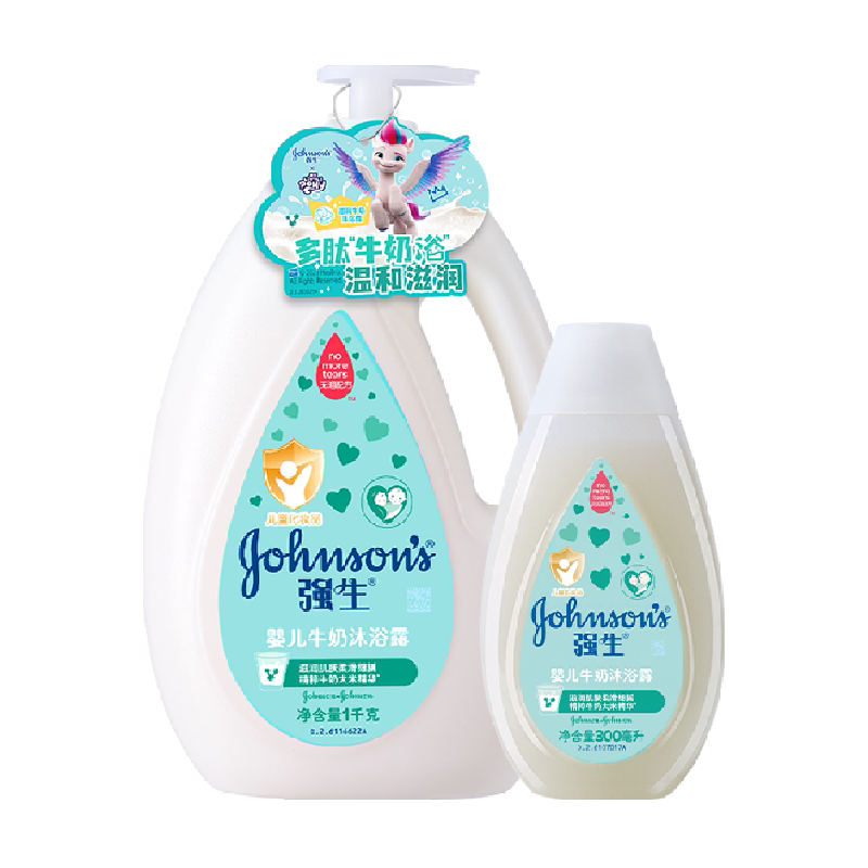 强生婴儿牛奶沐浴露宝宝婴幼儿保湿沐浴乳1L×1瓶+300ml×1瓶